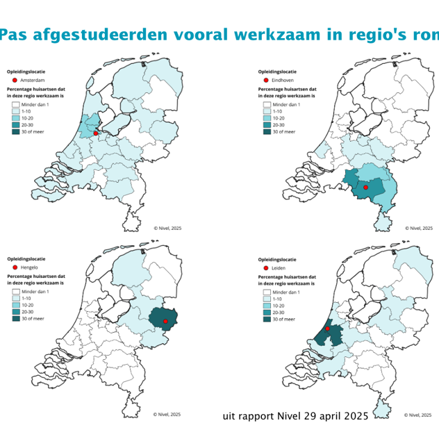 Onderzoek van het Nivel onder 264 aios en 1233 jonge huisartsen bevestigt opnieuw dat afgestudeerde huisartsen vooral gaan werken in de regio waar zij de opleiding hebben gevolgd. De enquête, uitgevoerd in opdracht van SBOH en in samenwerking met partijen uit het huisartsen- en opleidingsveld, laat bovendien zien dat huisartsen in opleiding (aios) meer bereid en geïnteresseerd zijn om andere regio’s te verkennen dan hun afgestudeerde collega’s. Daarbij kijken zij vooral naar initiatieven gerelateerd aan de praktijkvoering, zoals de mogelijkheid om proef te kunnen draaien en de garantie op waarnemers.